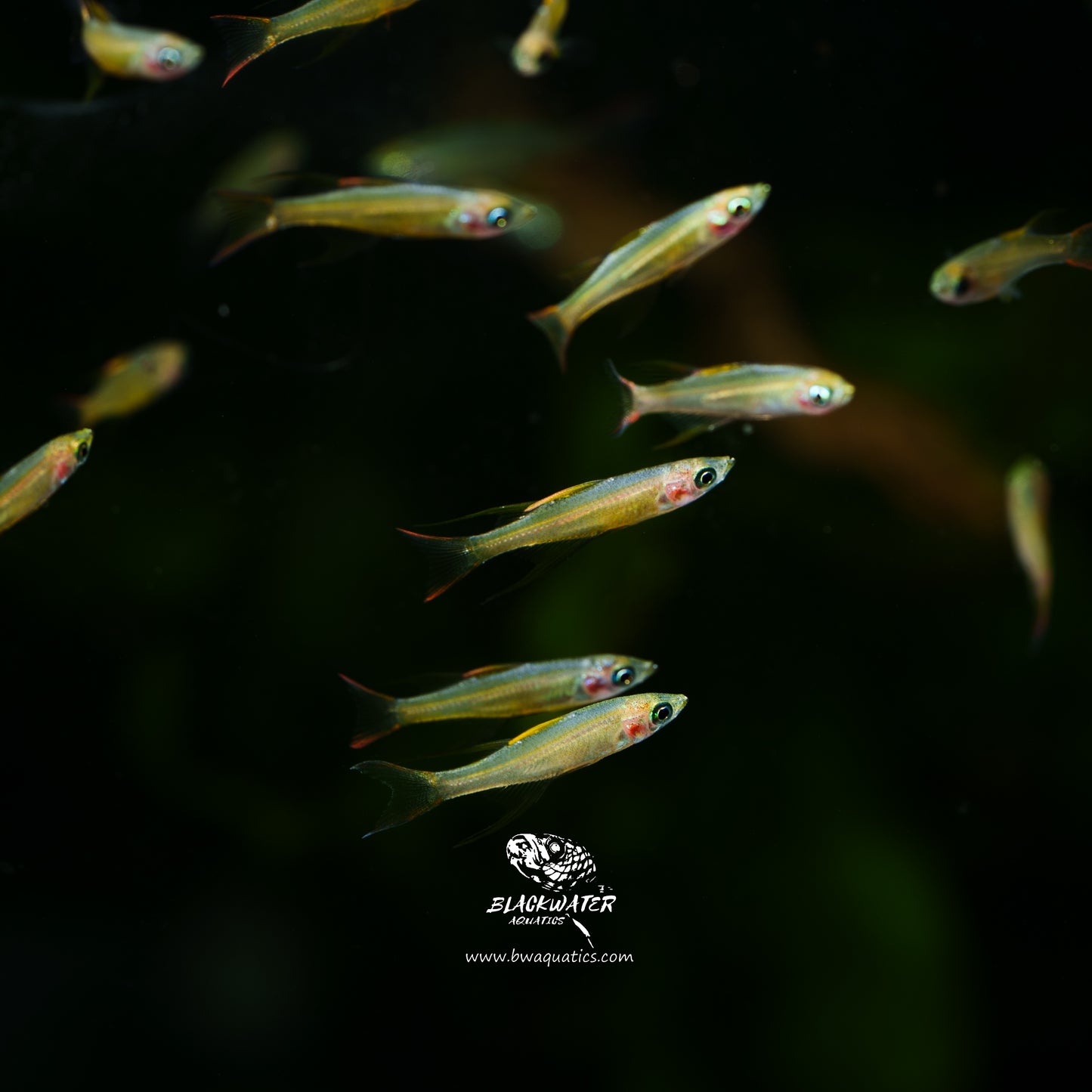 These are a beautiful schooling rainbowfish. They have several long flowing fins on top and bottom that resembles threads (given the name) The males can get beautiful colors when dominant or breeding. They are a must-see when the males are showing off to each other. They are currently kept at around 72-77ºF and a pH of roughly 6.5-7.